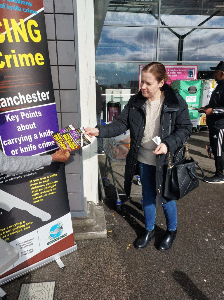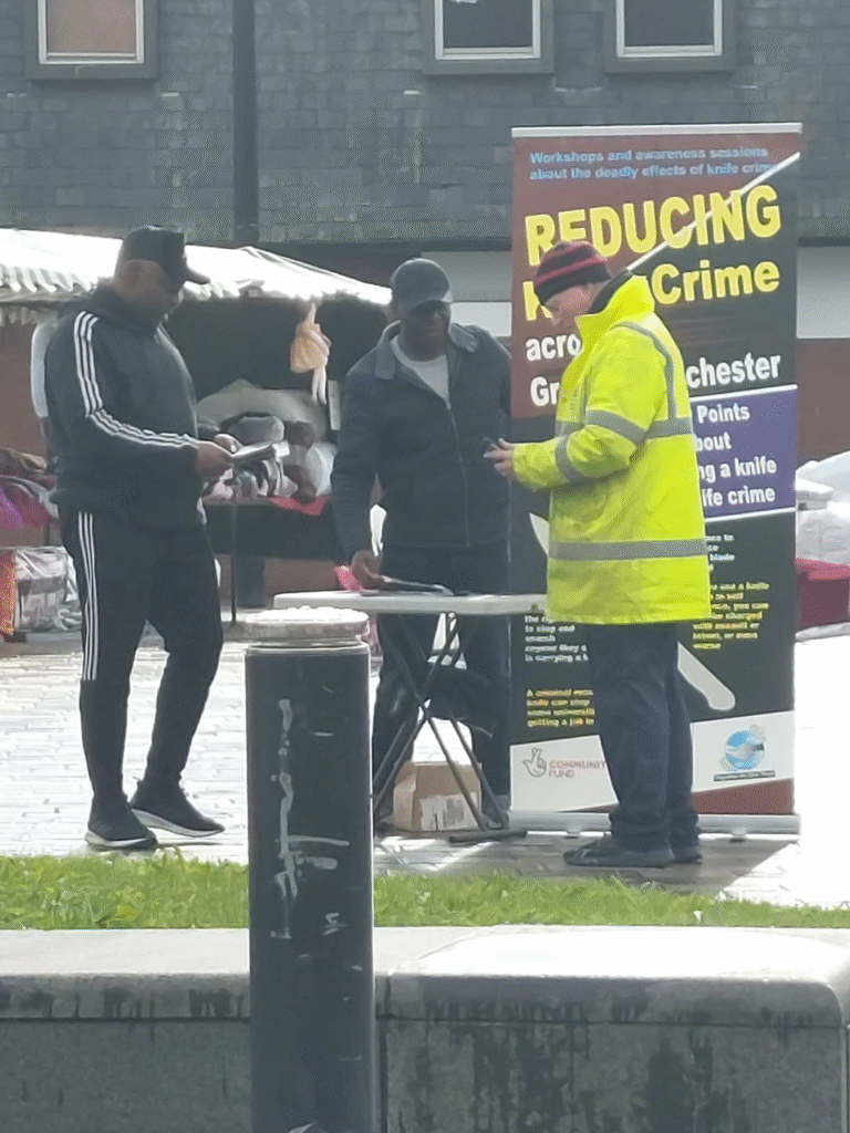 Together As One Trust (TAOT) volunteers out in the community during sensitization campaigns. Educating, informing and advising members of the public about the dangers of knife-related crimes. People showed interest and asked loads of questions, they all took away project leaflets promising to have serious discussions with their young ones (for those who were not with their children).